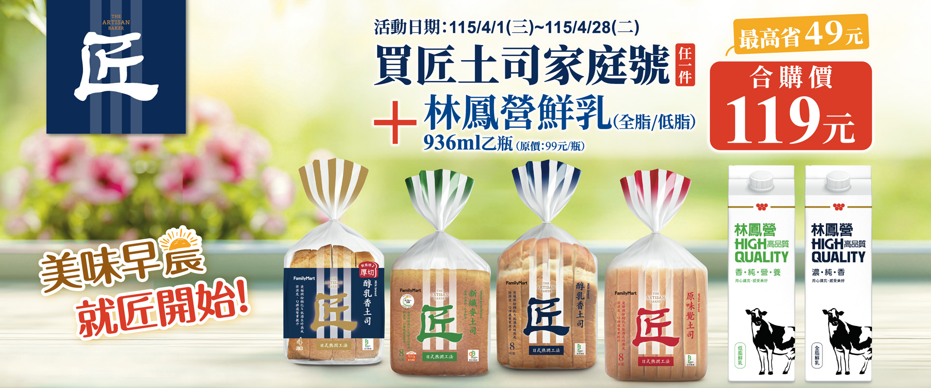 加入鮮乳坊桂芳鮮乳,自然乳香風味與柔軟土司完美結合。