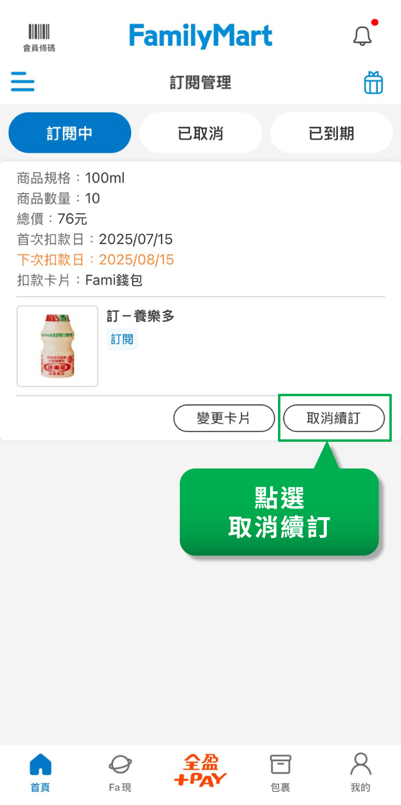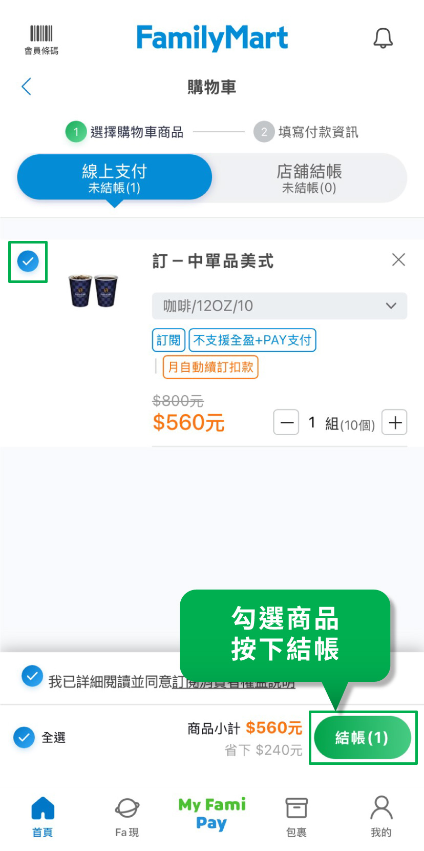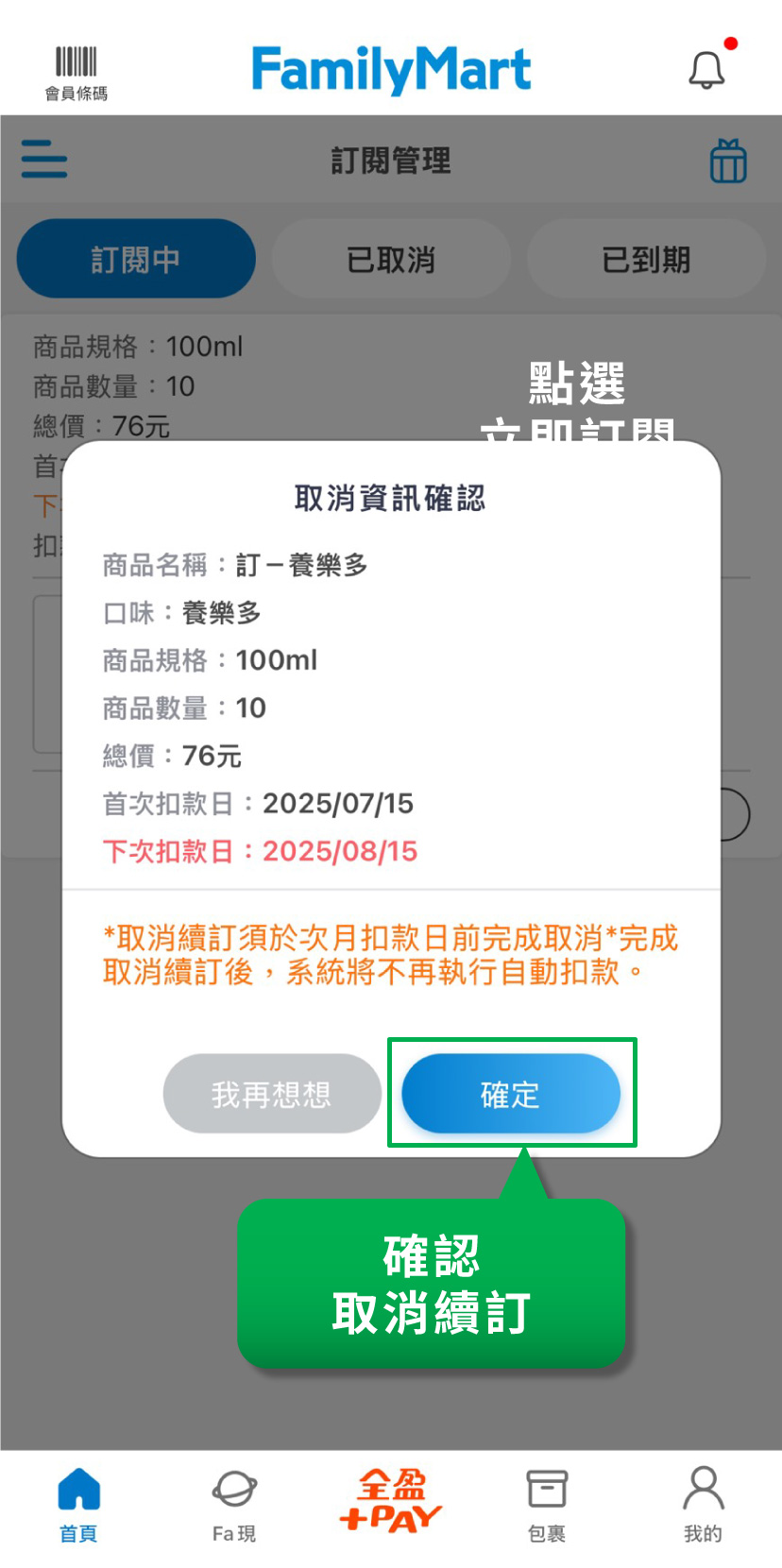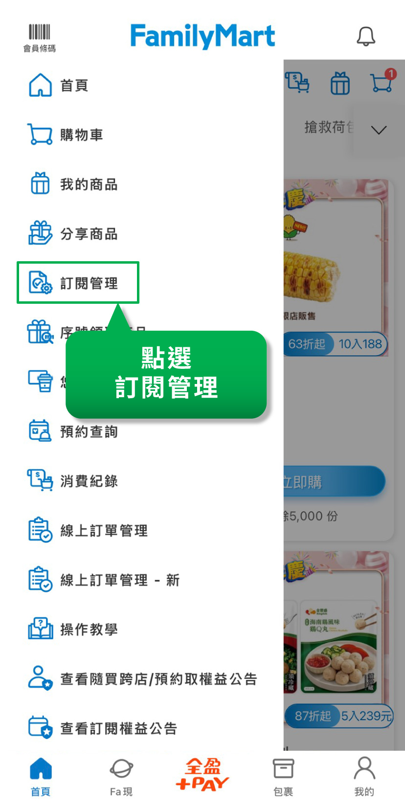 如何從全家APP分辨「訂閱」與一般隨買跨店取購買商品?