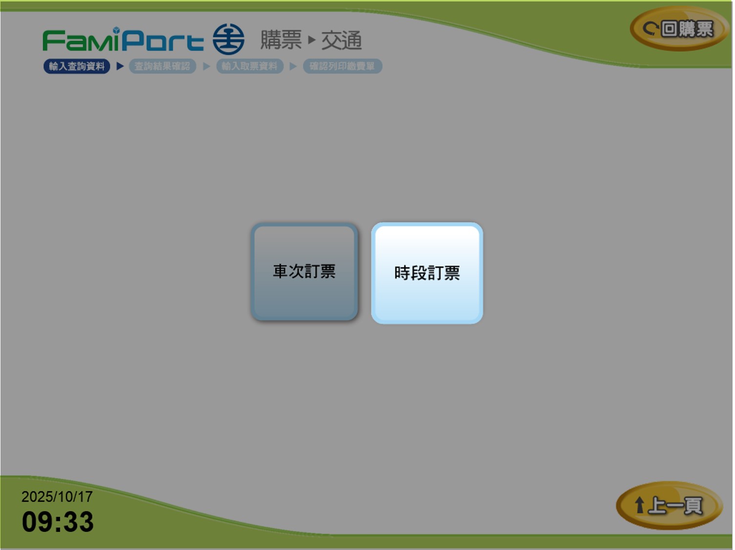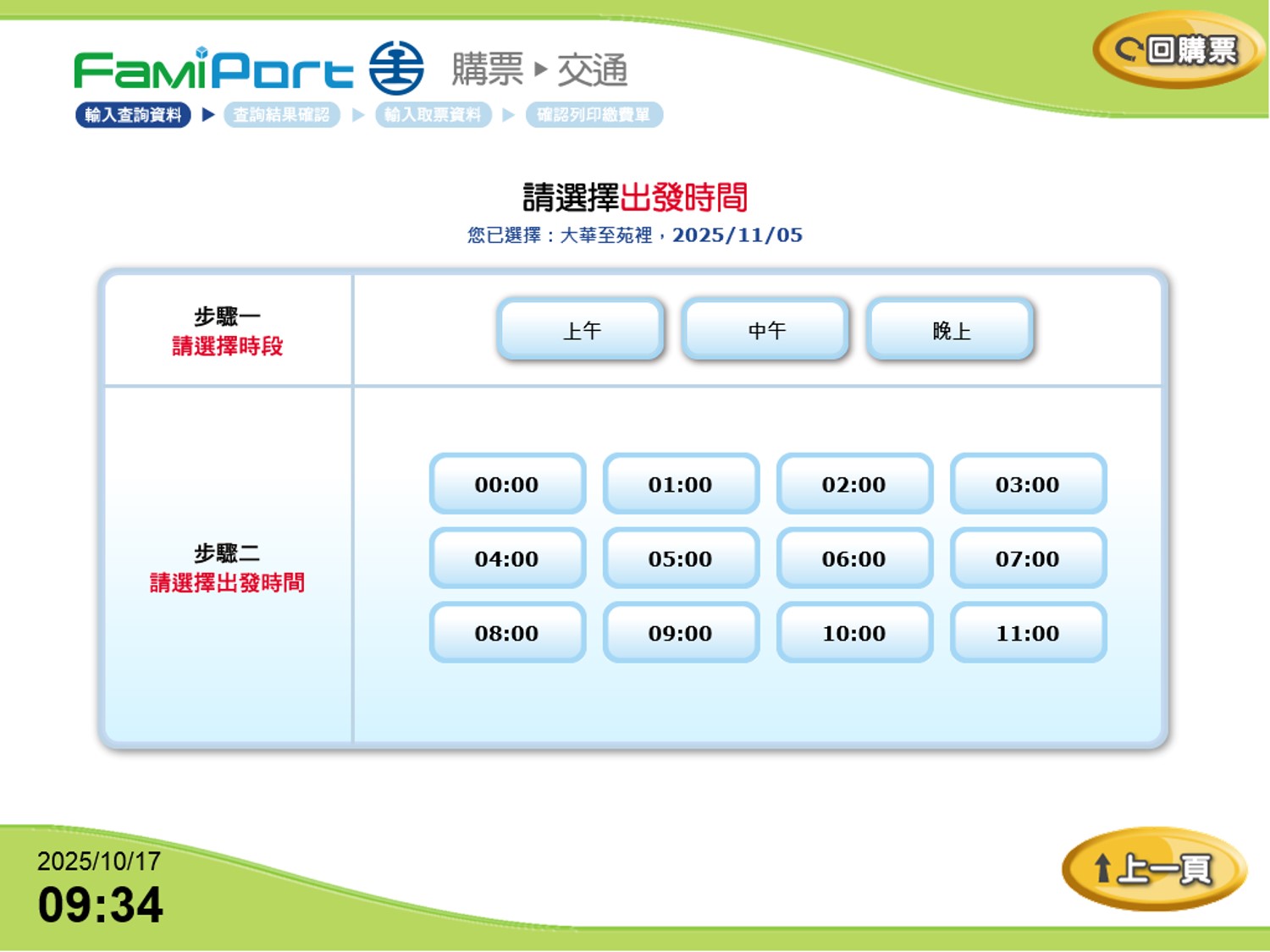 步驟一:請選擇時段;步驟二:請選擇出發時間