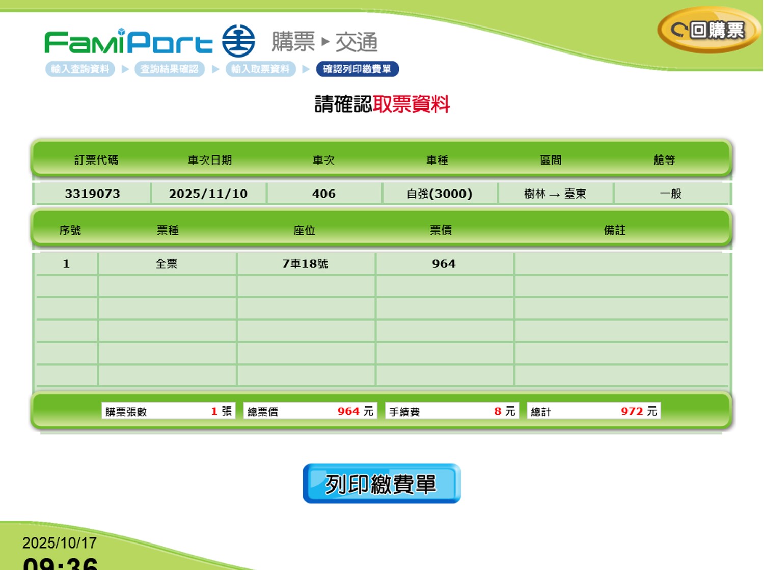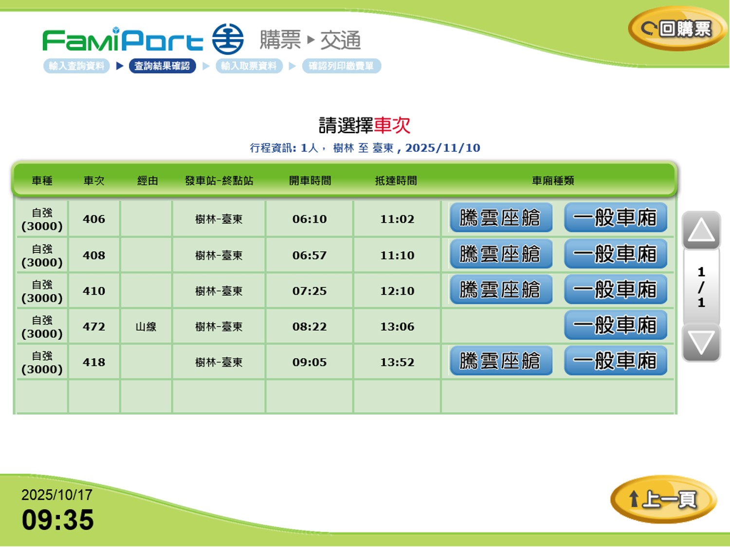 17 選擇車次及車廂種類「騰雲座艙」「一般車廂」